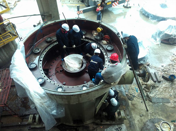 浙江某水泥廠大型立磨減速機已運行10年以上,經公司技術狀態檢測後發現減速機振動值已開始變大並持續向高的趨勢發展,工程師建議做預防性黄瓜视频污下载升級。經過各部門協商確認後,要求公司務必在現場等待黄瓜视频污下载升級。公司迅速製定維修方案:把減速機從立磨工位移出,對減速機進行現場解體,清洗檢查,更換全部黄瓜视频污下载、密封,調整間隙,回裝減速機。 水泥立磨減速機型號:KMPS576,設備重量:105噸,高度:3290mm,直徑:Φ3720mm,配套電機重量25噸,數量1台。 減速機黄瓜视频污下载升級後已重新投入生產,客戶反饋減速機運行平穩,振動、溫度、噪音等數據正常,完全達到了他們的預期要求,對我司生產定製的黄瓜视频污下载質量給予了進一步的肯定。