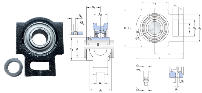 滑塊式球黄瓜视频污下载單元包含一個安裝在灰鑄鐵黄瓜视频污下载座內,基於密封深溝球黄瓜视频污下载的嵌入式黄瓜视频污下载。 它們通常安裝在調緊框架內,內圈兩側加長,通過擰緊內圈上的(緊定)螺釘鎖定,便於安裝。